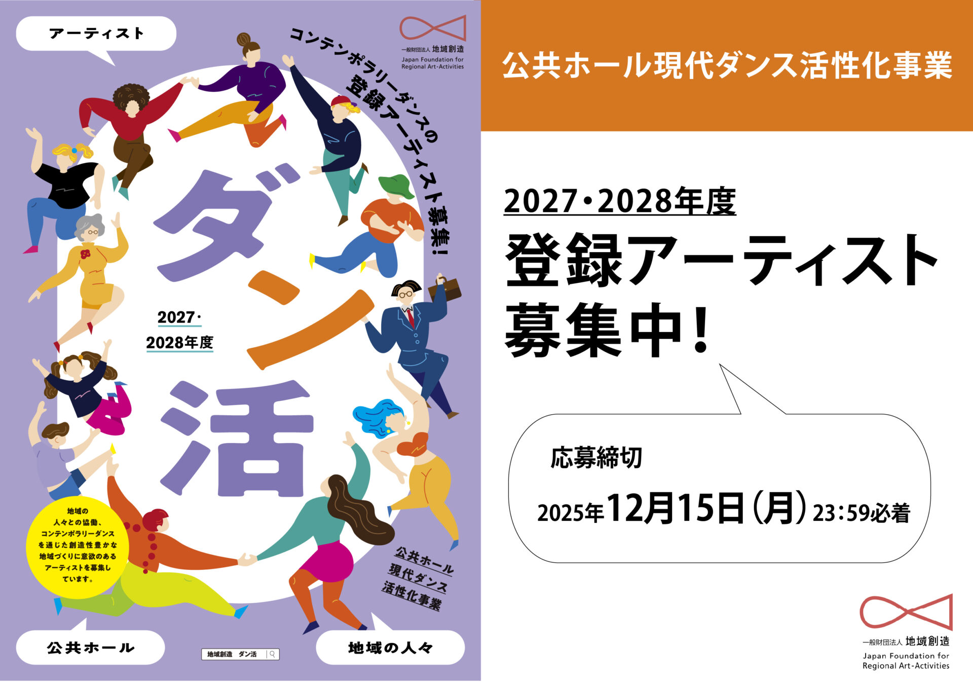 現在、2027・2028年度の実施に向け、登録アーティストを募集しています!ダンスを通じた創造性豊かな地域づくりに意欲のあるアーティストの皆さまからの応募をお待ちしています!